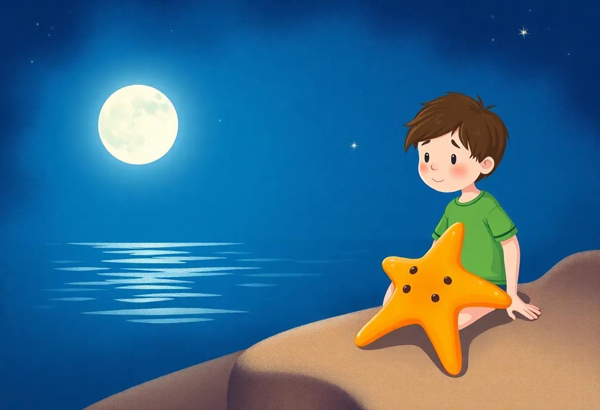 Through their shared adventures under the moonlight, they discovered the true meaning of trust. The boy listened patiently to the starfish’s tales of tide and waves, while the starfish admired the boy’s stories of forests and stars. Their bond was built on: