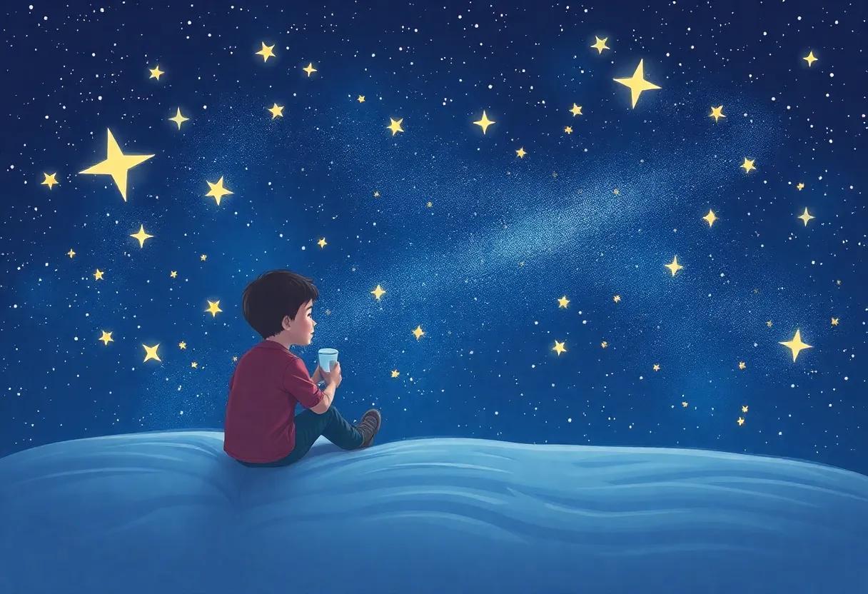 With every sparkling star he painted, he wove a tapestry of hope and wonder-turning bedtime into a peaceful adventure beneath the enchanted sky.
