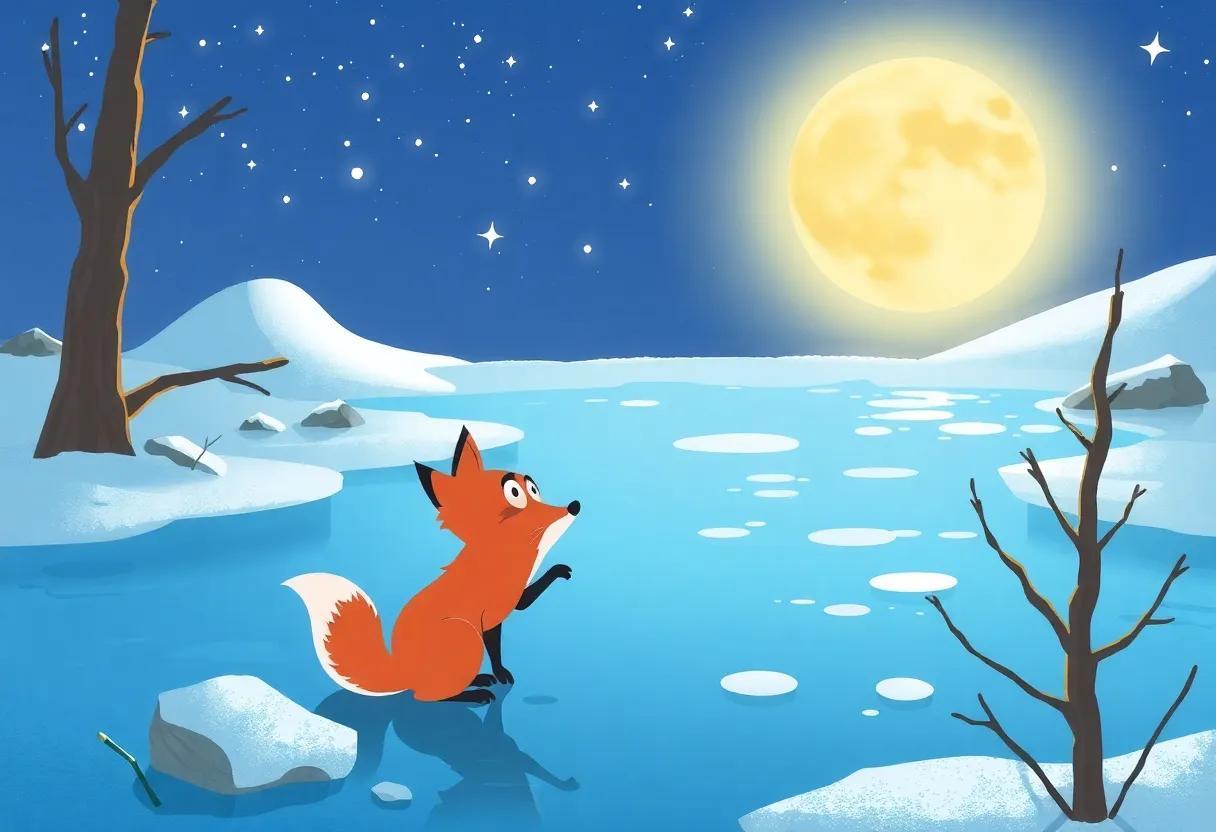 With each discovery, the fox felt a peaceful magic spread through the air, as if the frozen lake itself was inviting young dreamers to listen closely and imagine the marvelous stories held within every glistening frozen crystal.