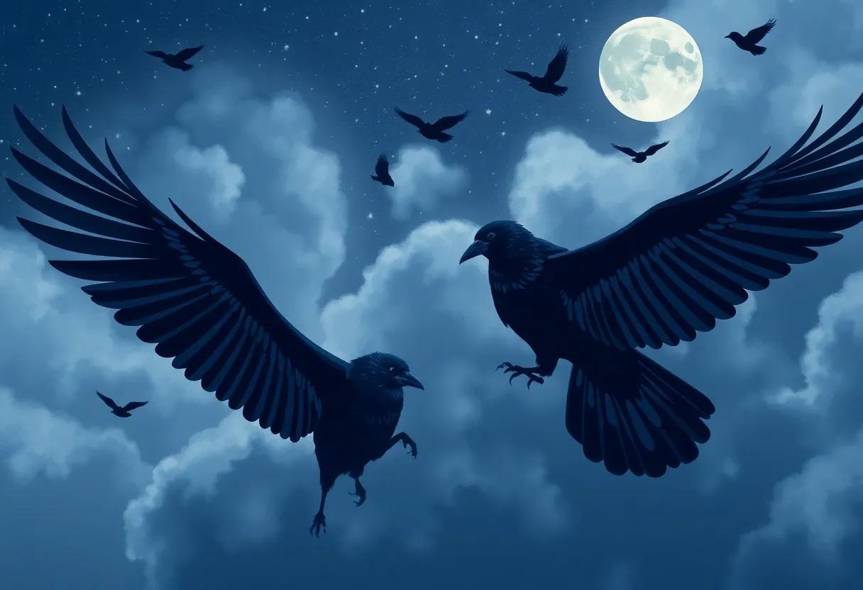 As the moon climbed high into the velvet sky, the forest awakened with a gentle chorus of rustling leaves and soft wingbeats. In the hush of the night, delicate whispers fluttered through the air, carried by the mysterious wings that danced silently between the trees. These wings belonged to a flock of enchanted crows, each feather shimmering with a faint silver glow under the starlight. They weren’t ordinary birds – they were guardians of secrets, messengers of dreams, and friends to the girl who had learned their language. With every soft caw, the crows shared tales of wonder and whispers of magic, weaving stories only the bravest hearts could understand.