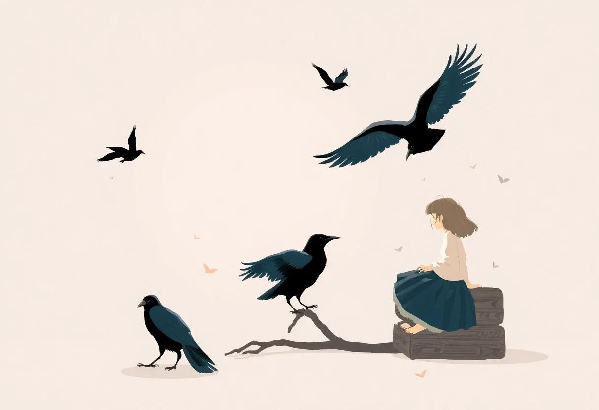 In a quiet village shaded by ancient oaks and whispering winds,there lived a girl whose laughter echoed with the mysterious cadence of crow calls. her secret was a magical gift: she could understand and speak the language of crows, weaving their night songs into tales that danced through the starlit sky. As dusk wrapped the world in its gentle embrace, her voice would rise and fall, sharing stories of hidden adventures and secret kingdoms perched between the branches, where shadows wore feathers and wings whispered dreams into the dark.
