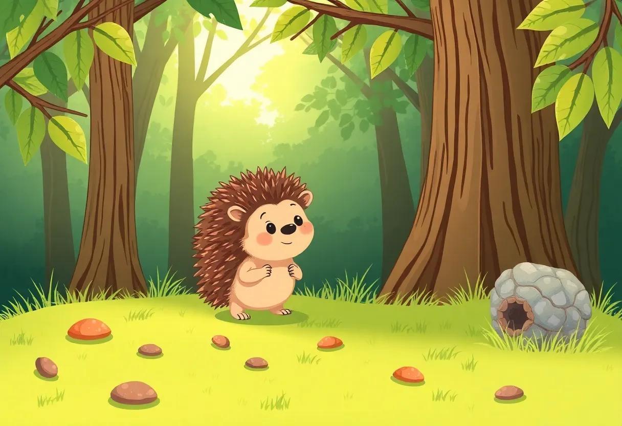 These magical sounds blended into a harmonious lull that lulled the forest and its small inhabitants into a peaceful, dreamy sleep, setting the perfect stage for the little hedgehog’s grand adventure to come.
