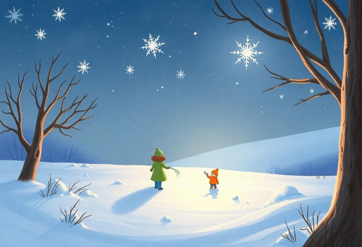 - mischievous snowflakes playing hide-and-seek underneath the starry sky,