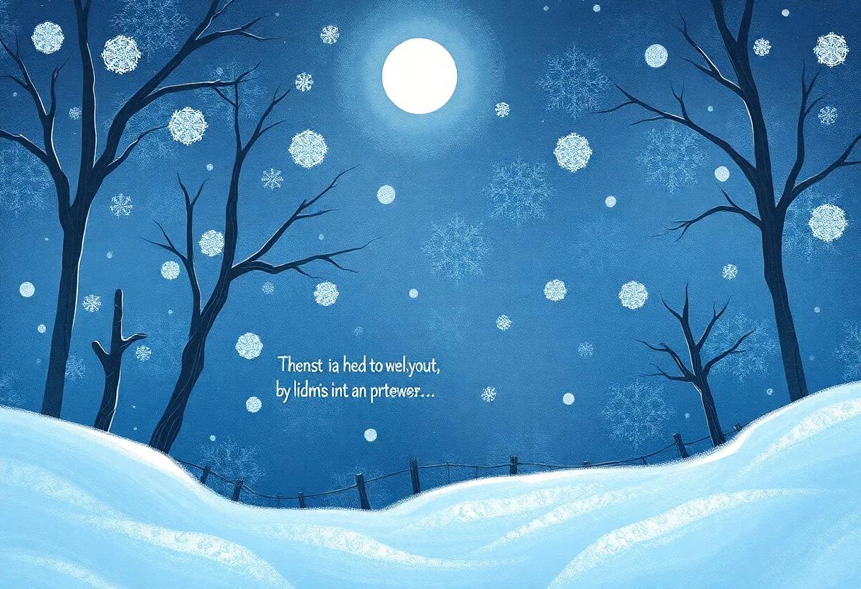 - Whispering trees coated in crystalline lace, telling bedtime secrets to the night wind.