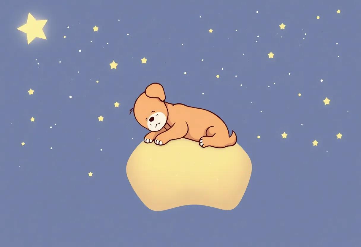 Nestled in a soft cloud of warmth, the little puppy curled up beneath a blanket of stars that shimmered like tiny lanterns above. His bed, crafted from the fluffiest pillows and snuggled close to a crackling firefly lamp, felt like a secret haven in the vastness of night. The gentle rustling of leaves and the distant lullaby of an owl wrapped around him like a gentle hug, encouraging his eyes to flutter shut and drift towards dreams. The world outside softened into a quiet hum, while his heart danced with the promises of starry adventures waiting just beyond the moon’s glow.